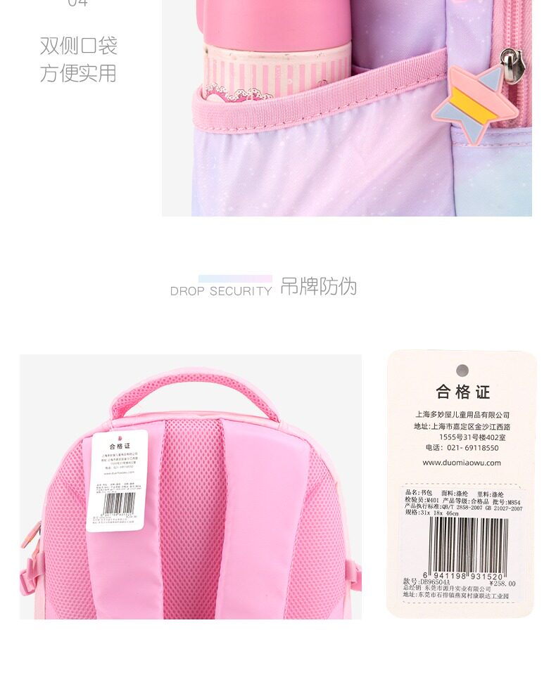 多妙屋 Детский школьный рюкзак для принцессы со сниженной нагрузкой, защита позвоночника