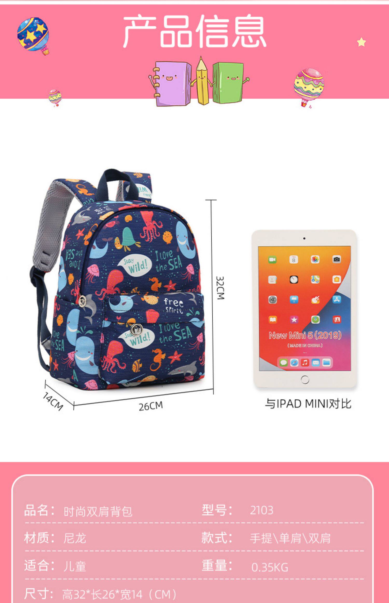 - Детский печатный повседневный пакет среднего гиппокампа