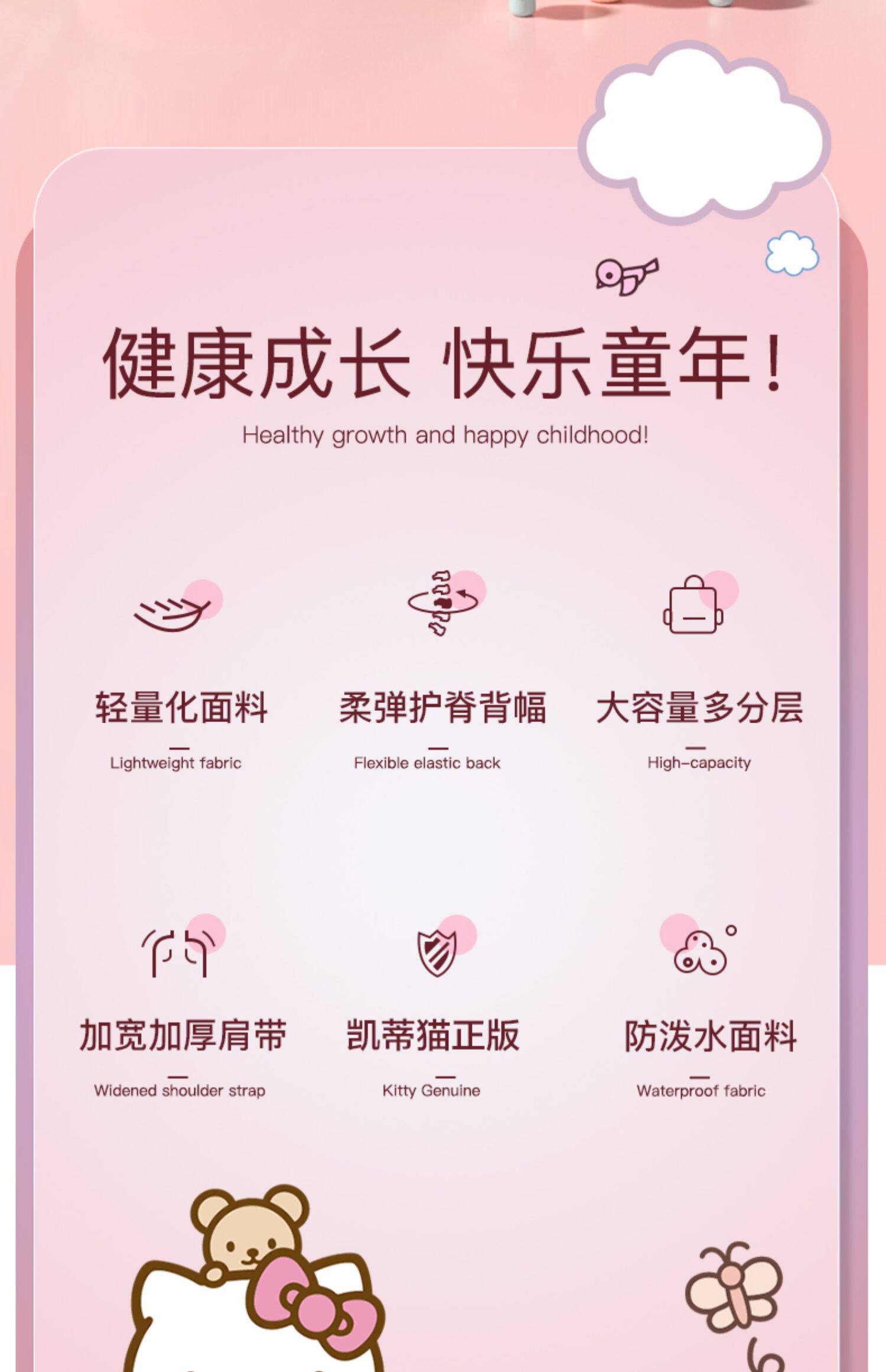 Hello kitty, детский школьный рюкзак со сниженной нагрузкой, защита позвоночника
