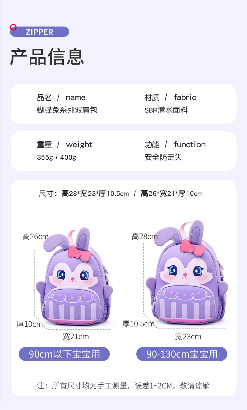 Детский школьный рюкзак для детского сада, милый кролик, 3 лет, 2 лет
