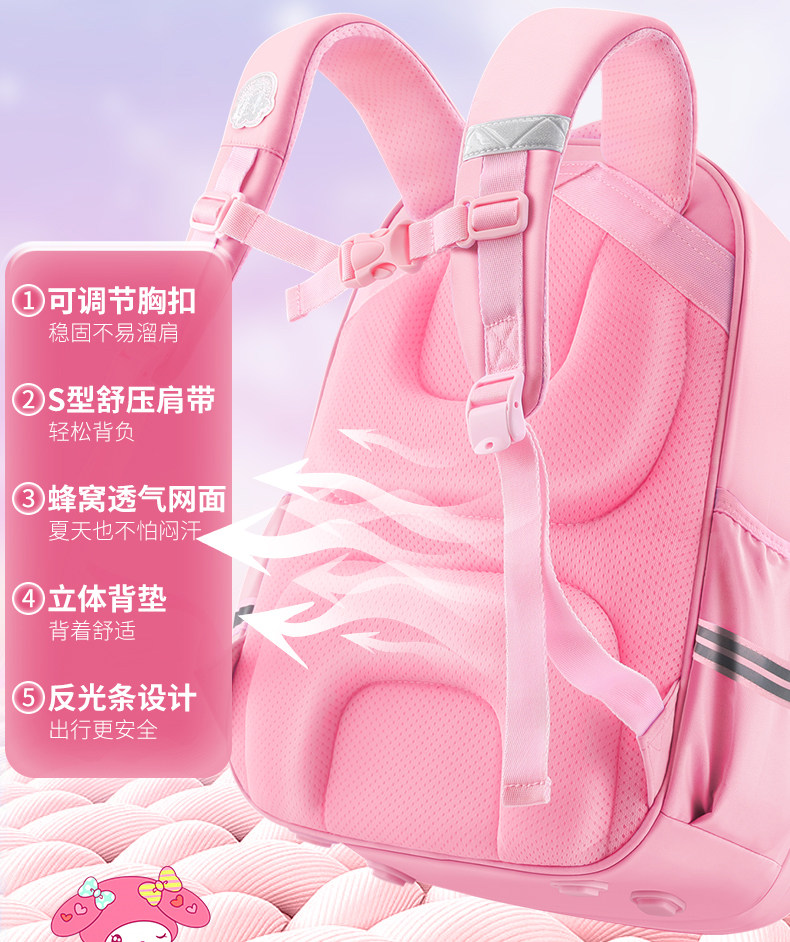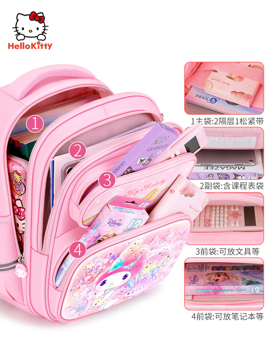 Melidi Schoolbag Girls начальная школа девочки и дети первого класса первого класса до третьего класса сокращение бремени позвоночник