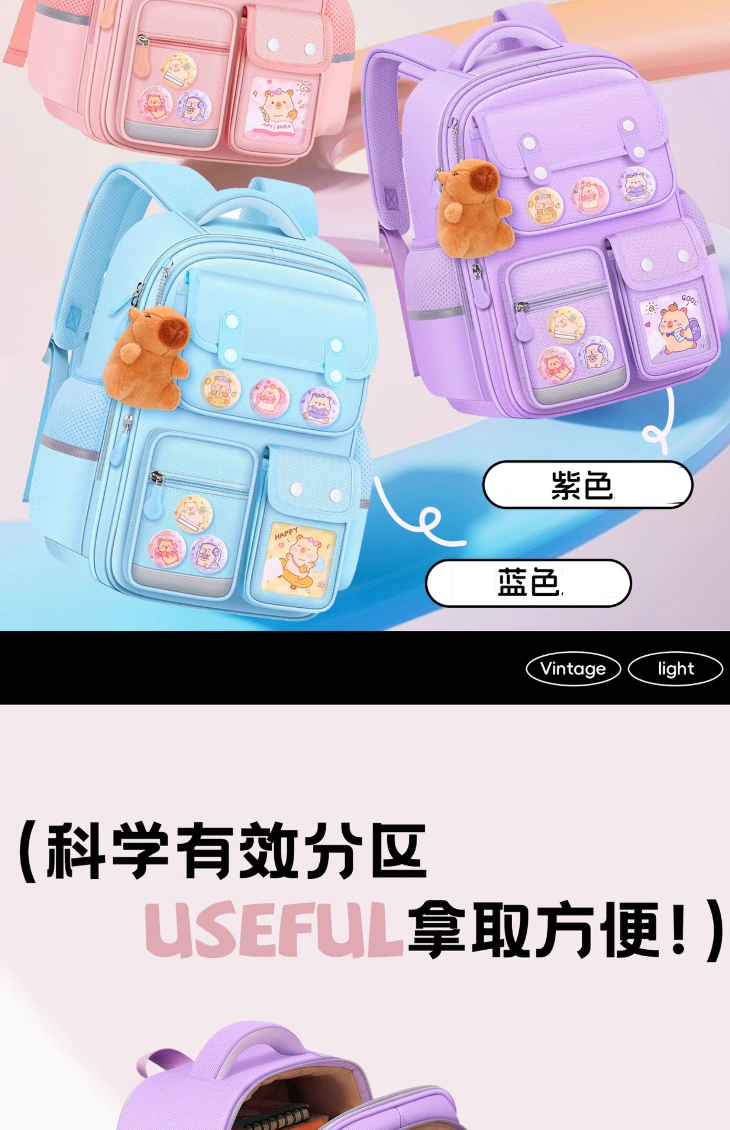 Школьная сумка Kapibala для девочек, учащихся начальной школы, новинка 2025 года, детский рюкзак с защитой позвоночника для мальчиков от первого до шестого класса