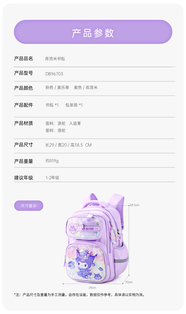 Школьная сумка Kuromi для девочек, учащихся начальной школы, 2025, новый рюкзак для девочек первого, второго и третьего классов, детский рюкзак для девочек