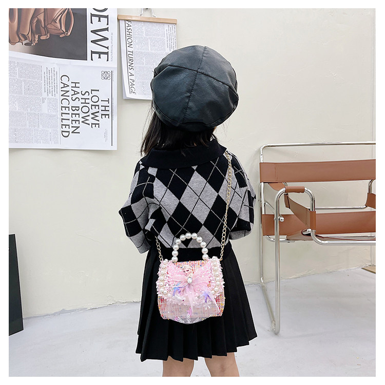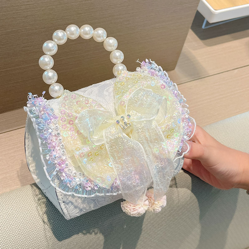 Весенняя небольшая сумка для принцессы, детская сумка, милая сумка через плечо из жемчуга, тренд сезона, в стиле Шанель