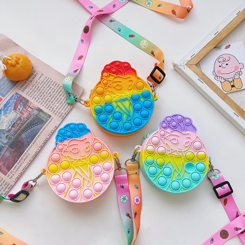Мультяшная сиреневая детская сумка, милый картхолдер, детская силиконовая сумка через плечо