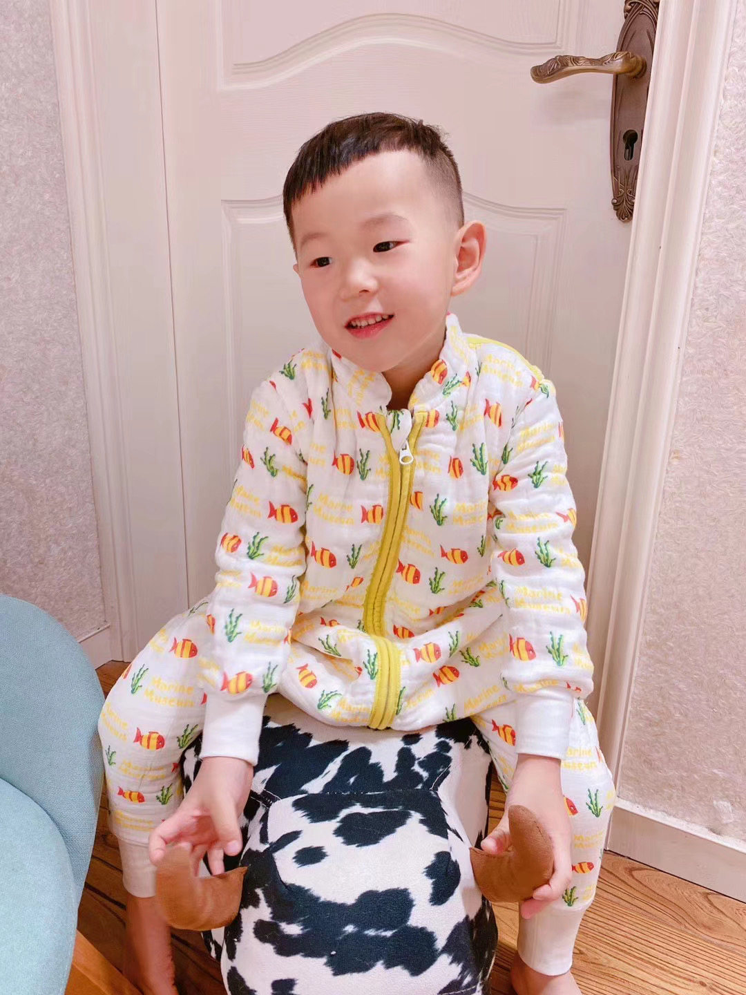 Погода в Чжушане немного холодная и 20 градусов, просто носите хлопковый свитер. Летом вы можете включить кондиционер, и вы ничего не можете покрыть. Соответствующая толщина.Пройдящий ребенок может носить его как домашнюю одежду, когда он не спит. Это супер мило, и все говорят, что это похоже на маленький пингвин