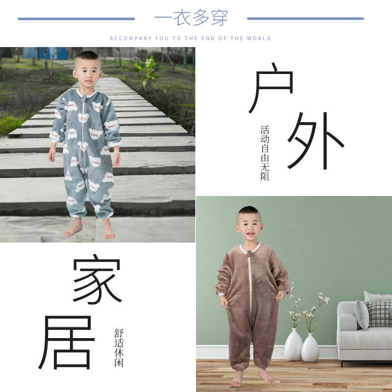 Детский осенний фланелевый спальный мешок, детская пижама, подходит для подростков, увеличенная толщина