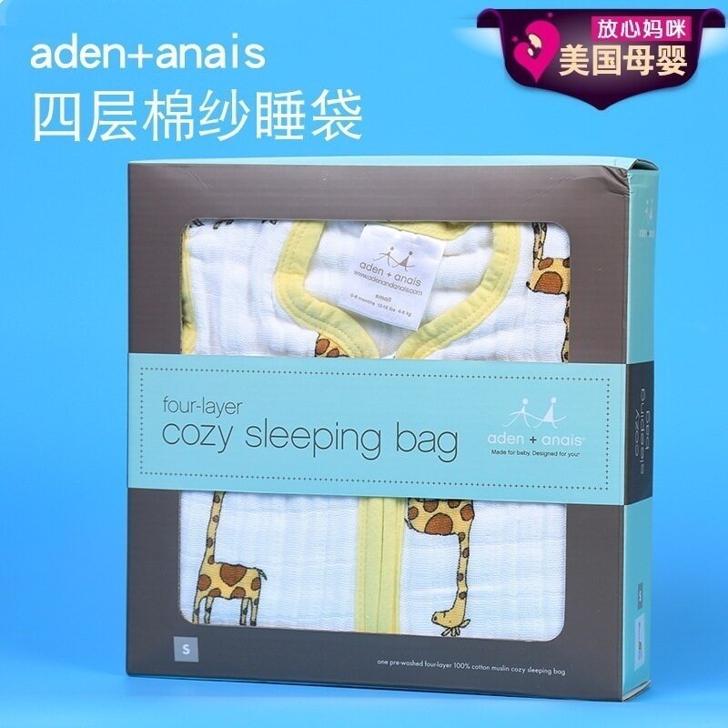 Американская покупка Aden+Anais теплый спальный мешок детский анти -кик -удар и хлопок сгущенным четырьмя слоями для спальной пряжи Q