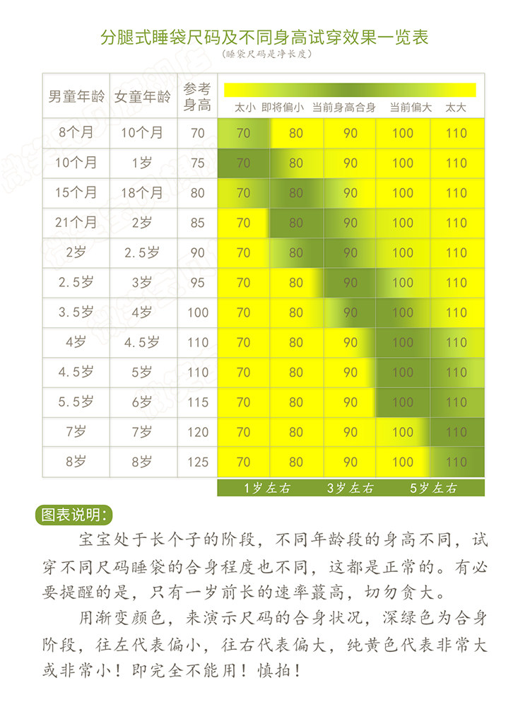 | Длина: | 70 см (применимо к 0-1 с половиной лет), 80 см (применимо к 1-2 с половиной), 90 см (применимо к 2-4 годам), 100 см (применимо к 3-6 годам), 110 см (применимо к 4-8 годам) |