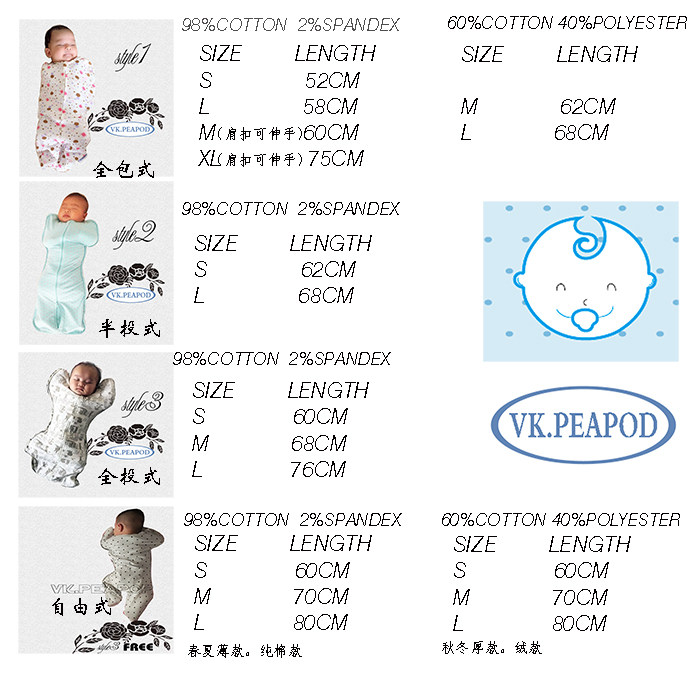 VK.PEAPOD 棉 棉 Имитация сдачи хлопка 襁 褓 Сумка для пеленки двойной спальный мешок на молнии на молнии