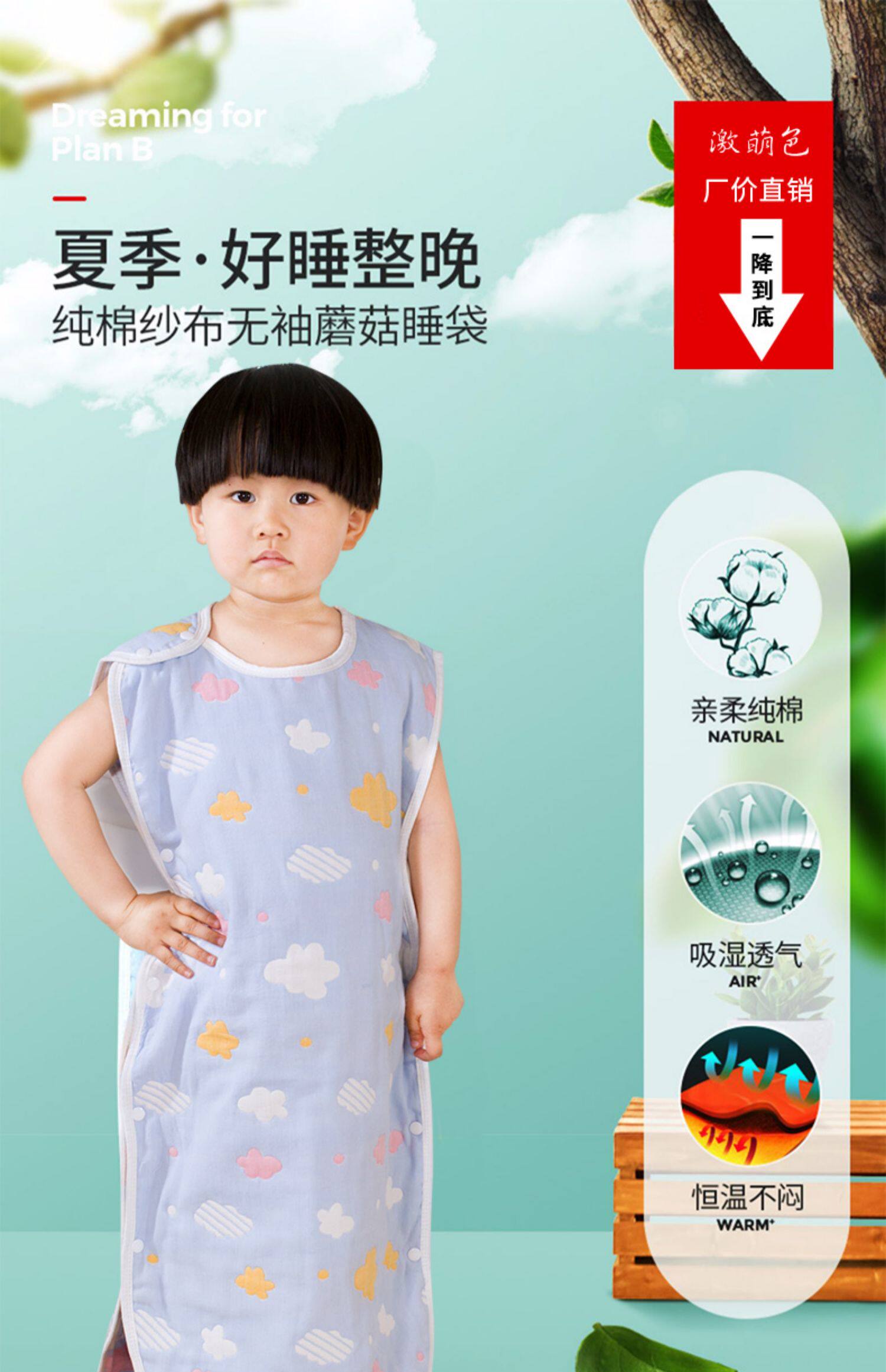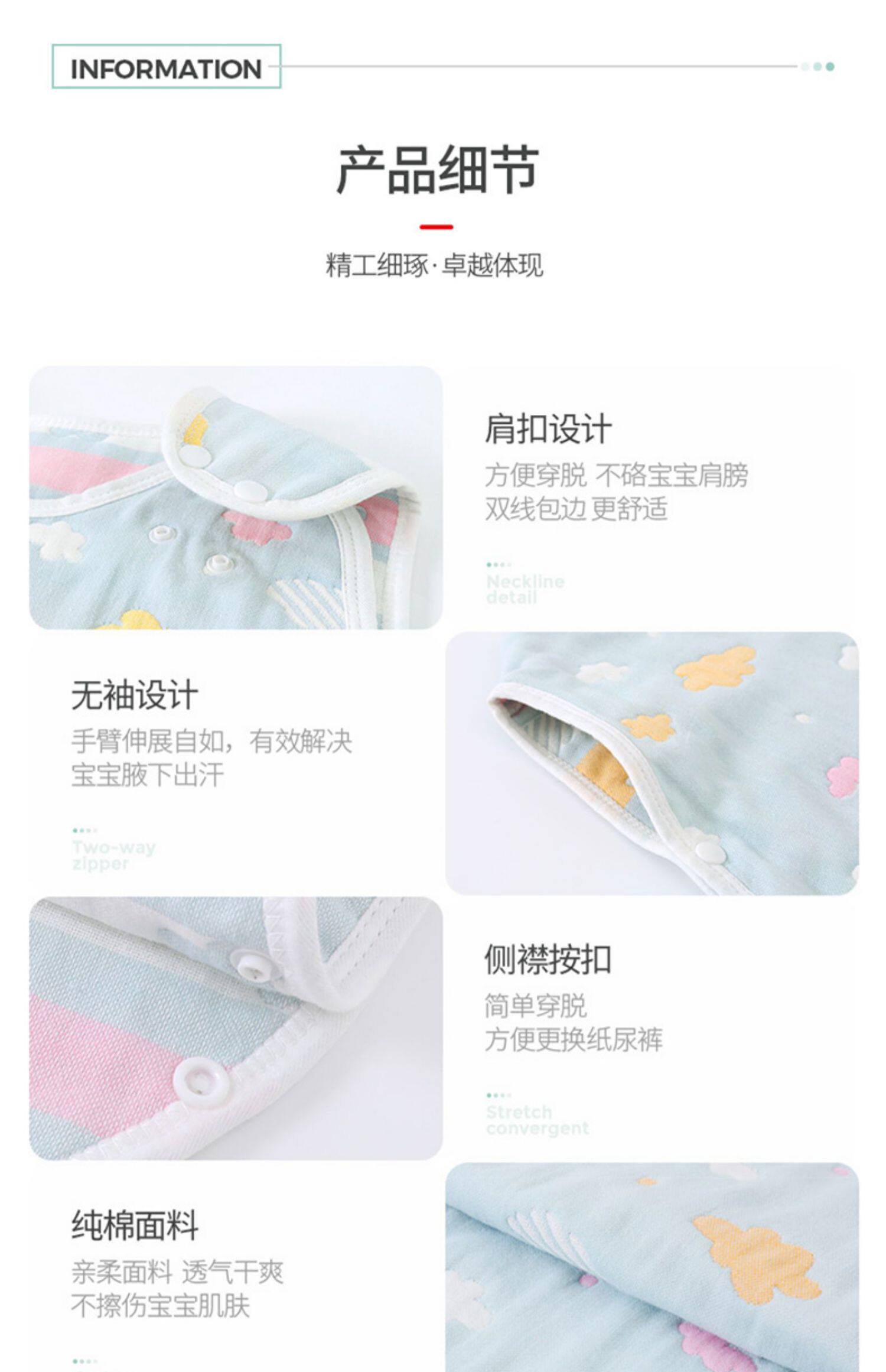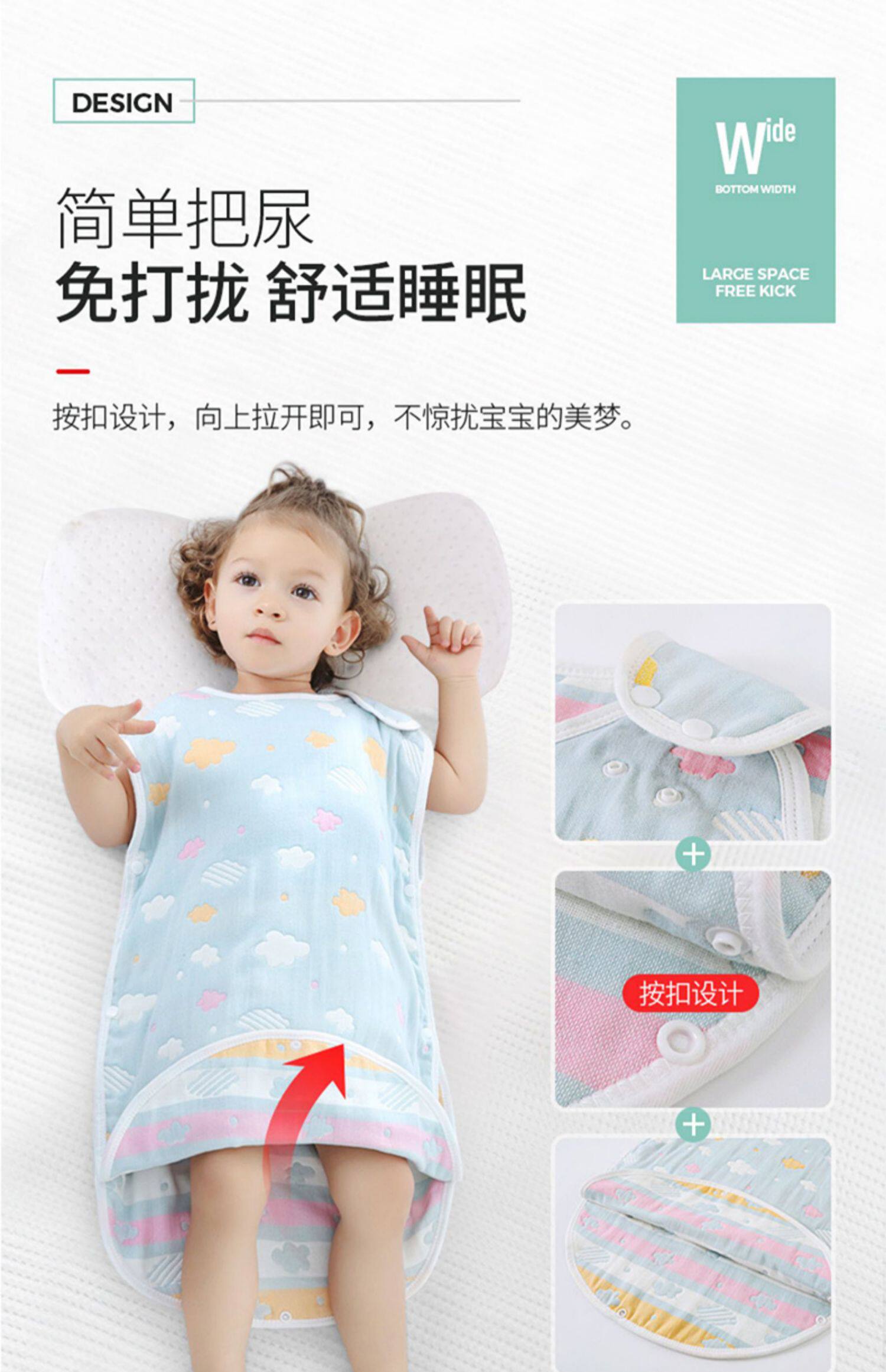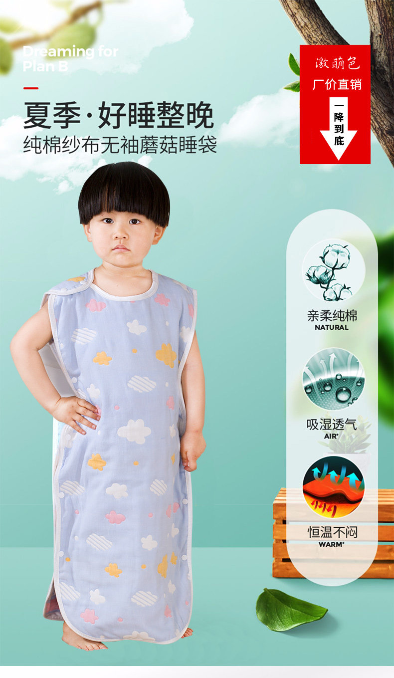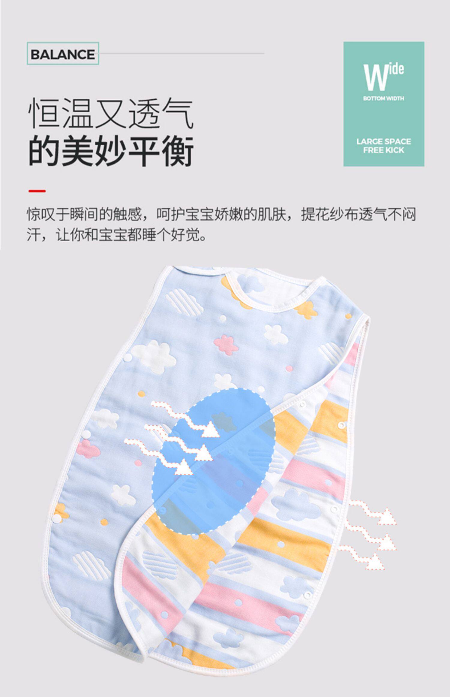 激萌色 Летний марлевый хлопковый спальный мешок для новорожденных, 6 этажей