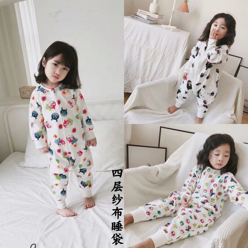 Детский спальный мешок, марлевая мультяшная пижама, осенний лонгслив
