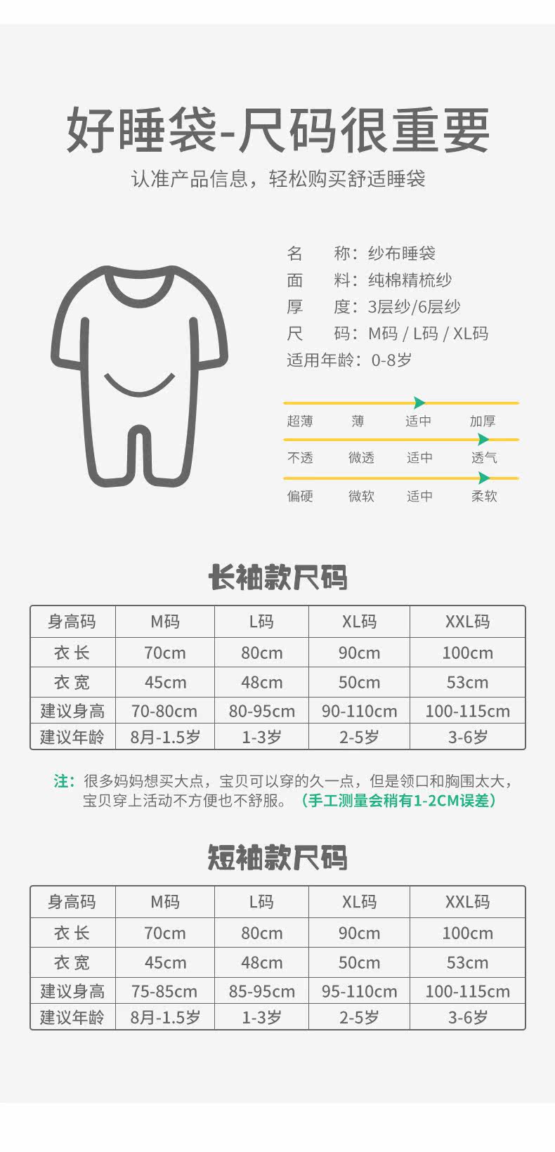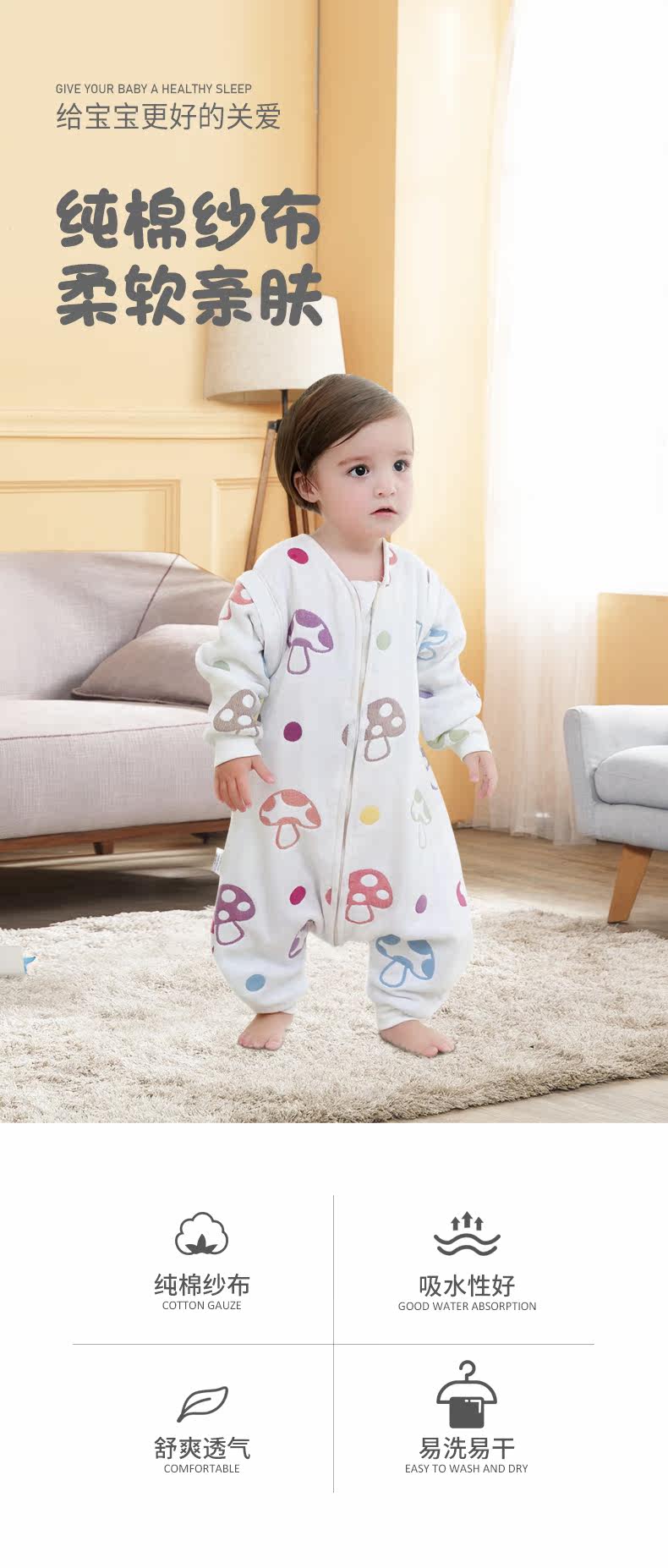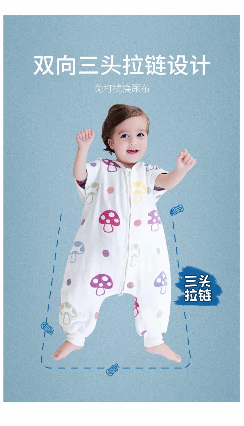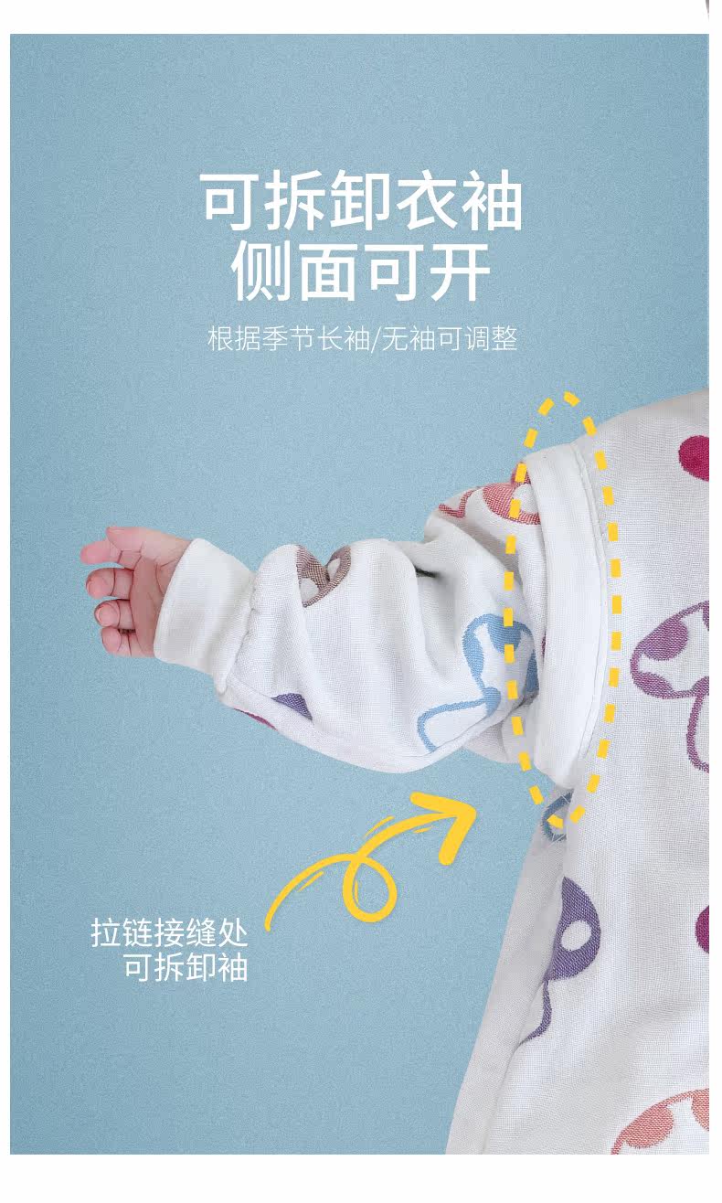 Детский осенний тонкий хлопковый спальный мешок, марлевый универсальный лонгслив на четыре сезона