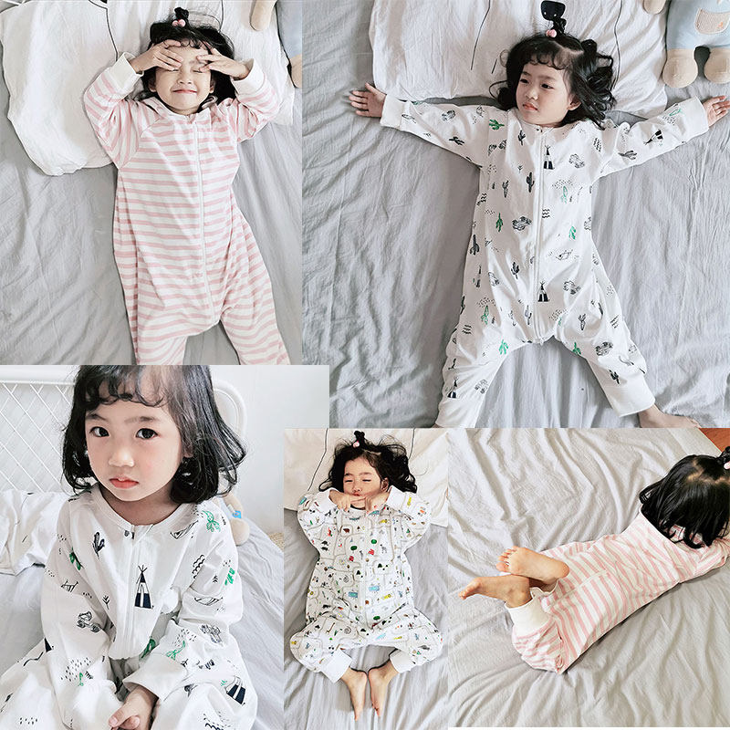 Летняя детская хлопковая пижама для мальчиков и девочек, бандаж пупочный, спальный мешок, свободный крой
