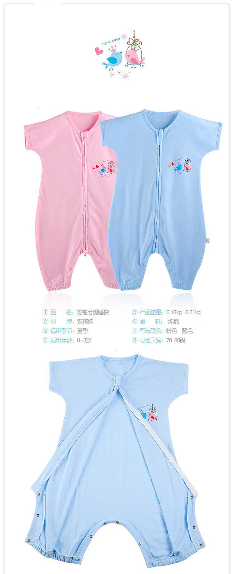 Детская летняя тонкая пижама, детский летний спальный мешок, короткий рукав