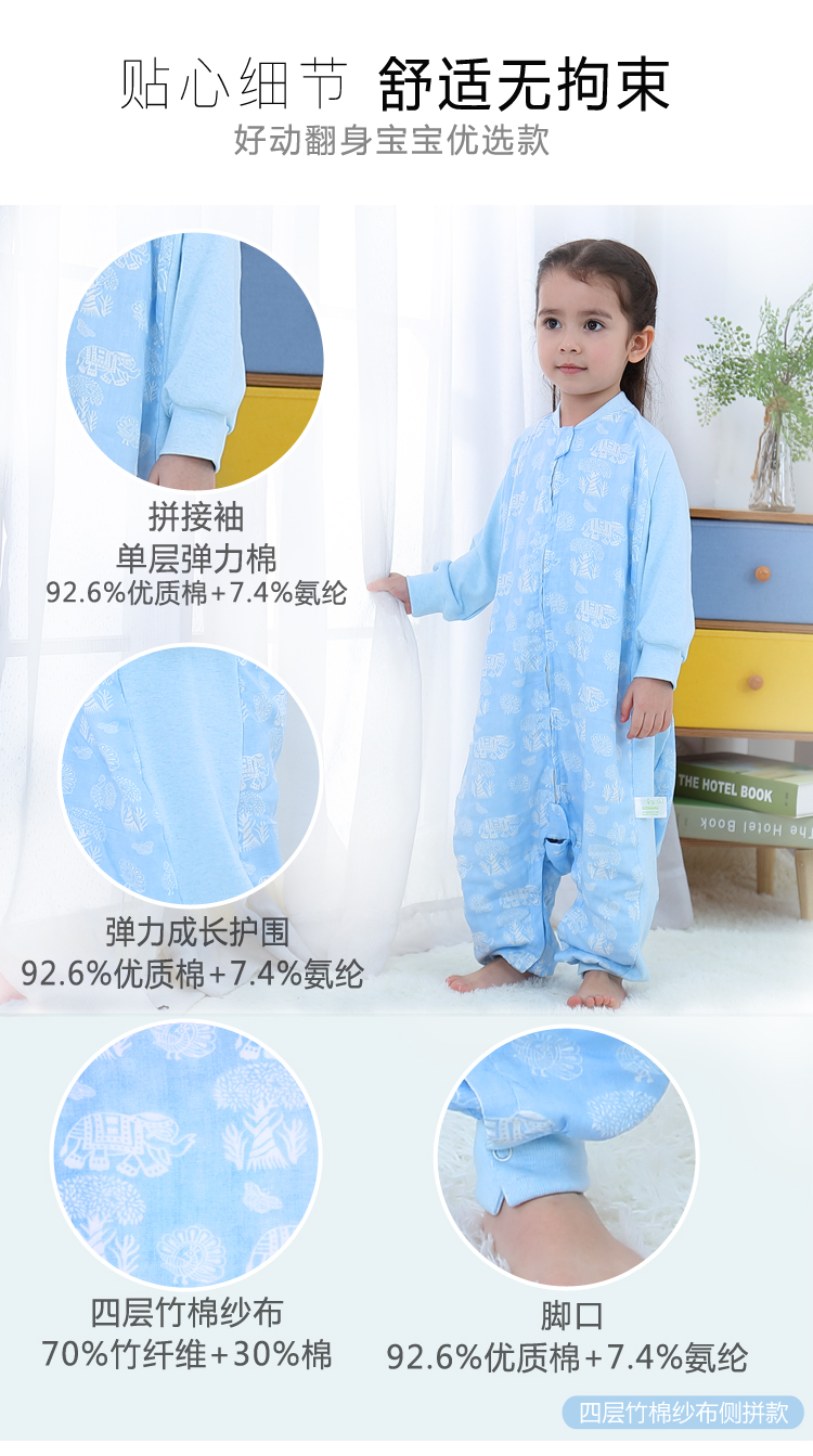 Детский осенний спальный мешок, детская стеганая марлевая демисезонная пижама, подходит для подростков