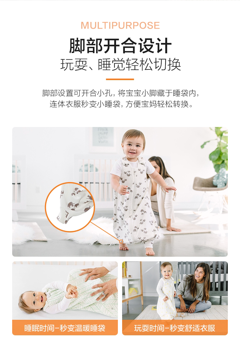 Хлопковый тонкий спальный мешок для раннего возраста, США, 2 в 1
