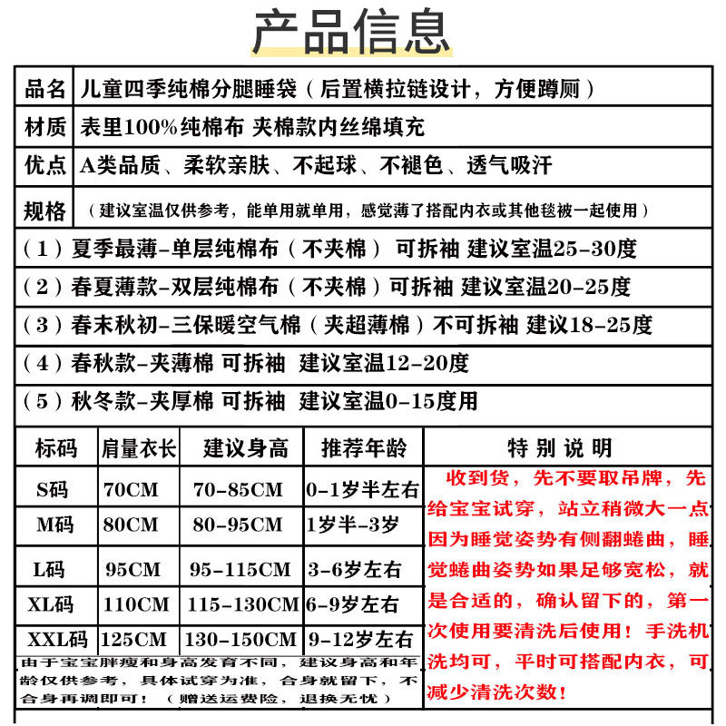 Весенний стеганый зимний хлопковый спальный мешок на четыре сезона, осенний, увеличенная толщина, 2-4-6-8-10 лет