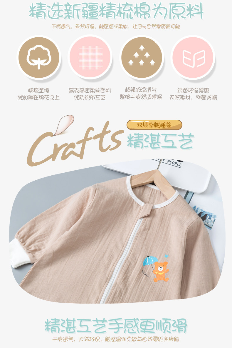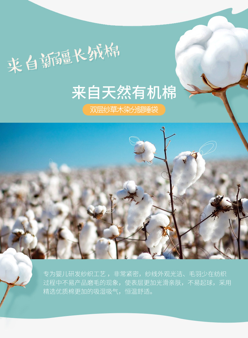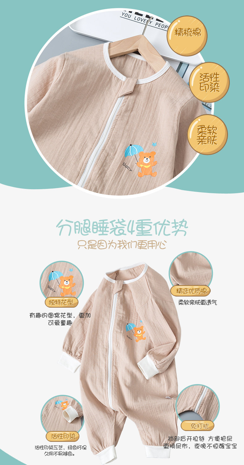 南极人 Летний тонкий универсальный хлопковый марлевый спальный мешок на четыре сезона для новорожденных