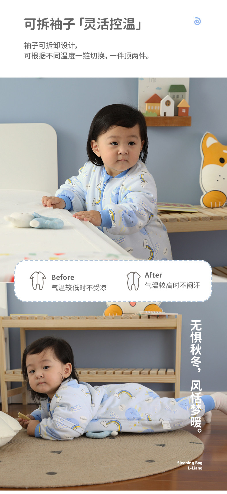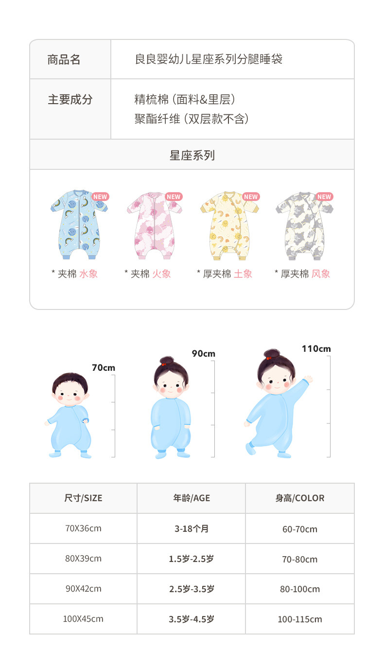 良良 Детский спальный мешок осенью и зимним детский спальный мешок для спального мешка из чистого хлопка детского противника, весны и осени тонкой