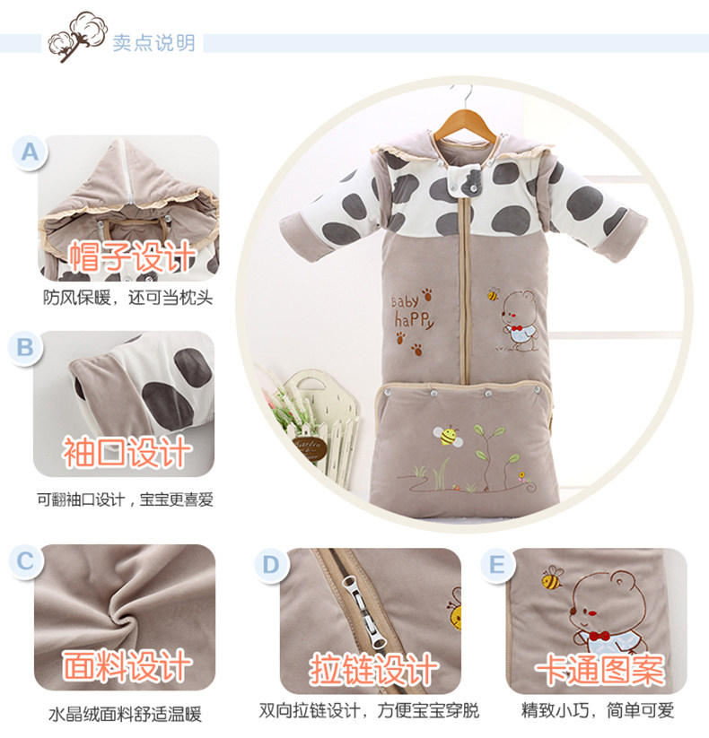 Зимний длинный хлопковый универсальный спальный мешок для раннего возраста на четыре сезона, увеличенная толщина