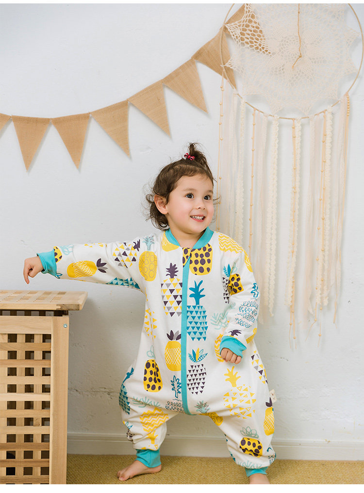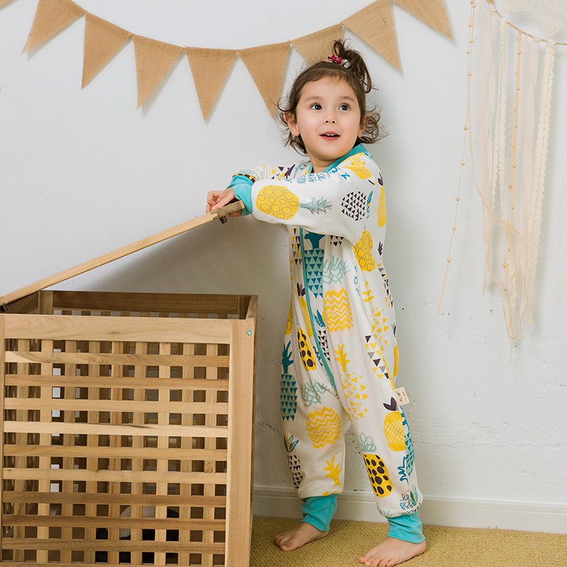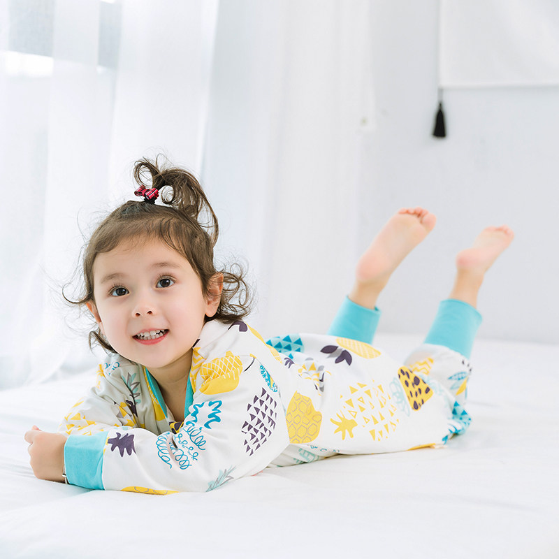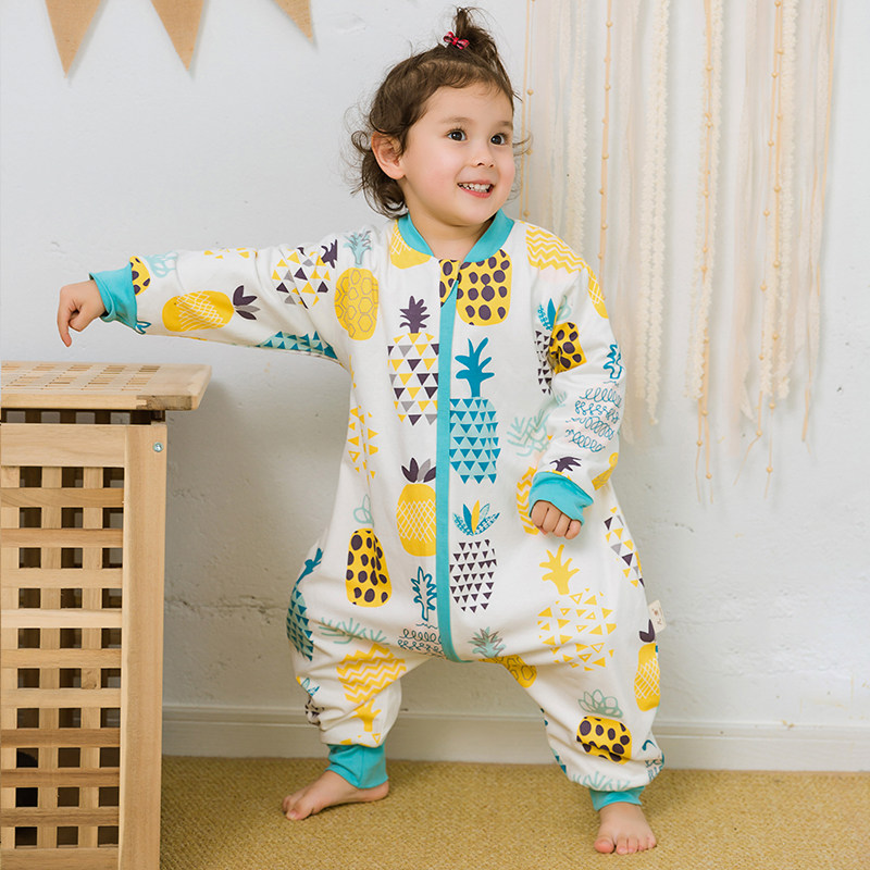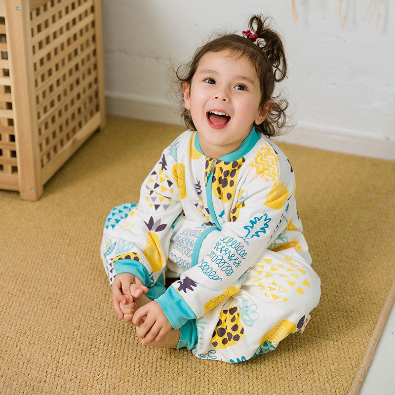 Детский двухэтажный осенний хлопковый спальный мешок с молнией, универсальная детская пижама на четыре сезона