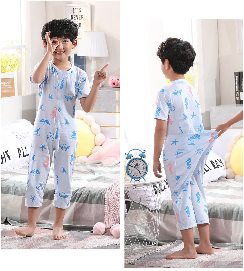 Детский спальный мешок, летняя хлопковая тонкая пижама для мальчиков, короткий рукав