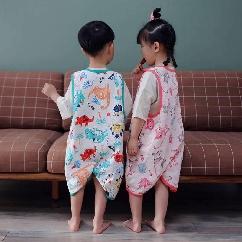 Двухэтажный марлевый жилет, спальный мешок без рукавов, динозавр, пижама