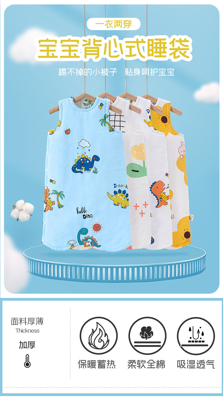 棉寓言 Хлопковый детский банный халат подходит для мужчин и женщин, демисезонная пижама для девочек, спальный мешок, увеличенная толщина