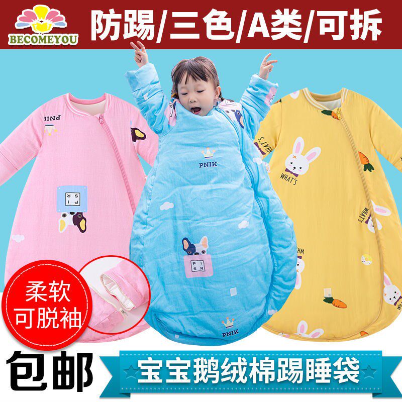 Осень и зимняя детская 3D -рукав Трехмерный спальный мешок сгущенным большим пространством постоянной температуры детский гусь бархатный хлопок.