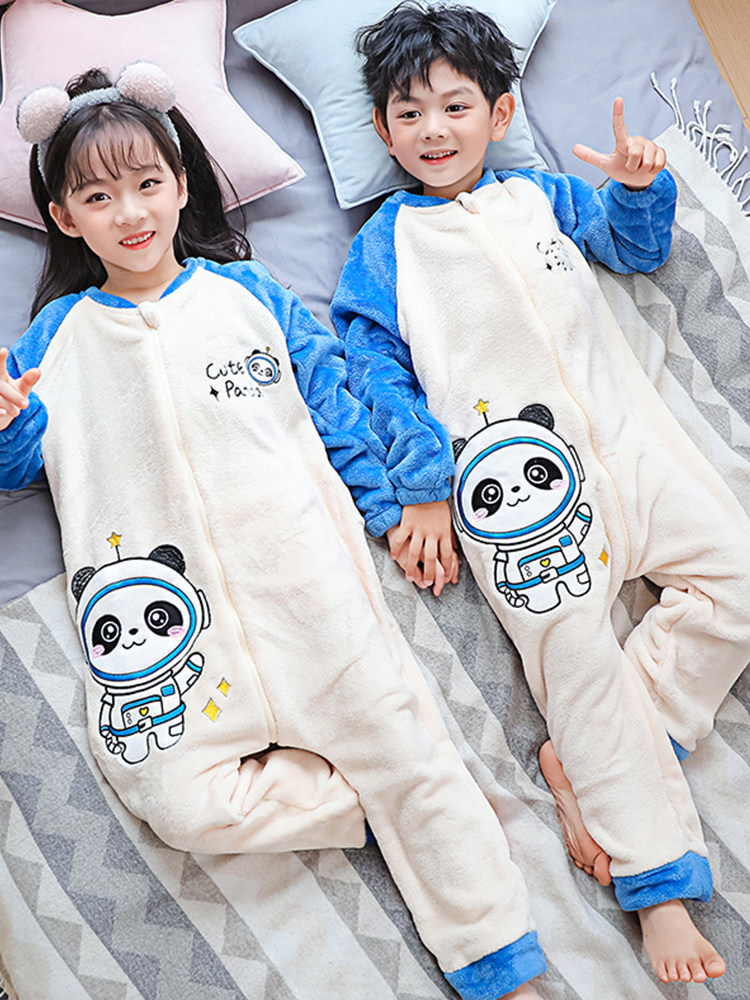Детская коралловая бархатная пижама для мальчиков, демисезонный фланелевый спальный мешок, увеличенная толщина, подходит для подростков