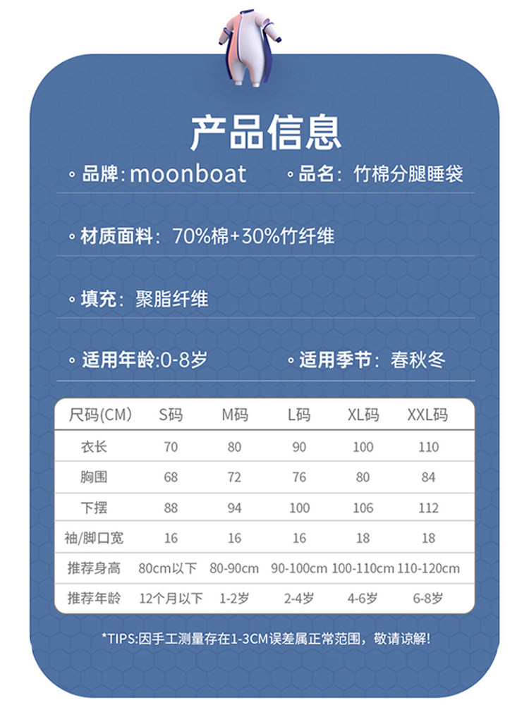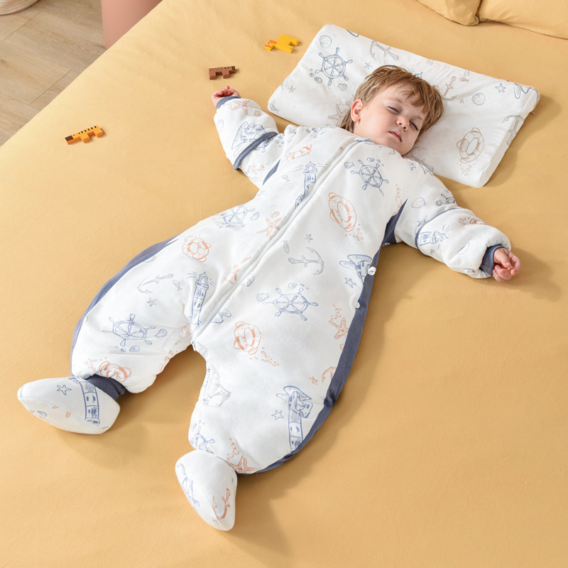 [Разбитый зазор кода] Детский спальный мешок осень и зимние дети, бамбуковые хлопковые ножки, утолщенные детские анти -ноки универсальны в четырех сезонах