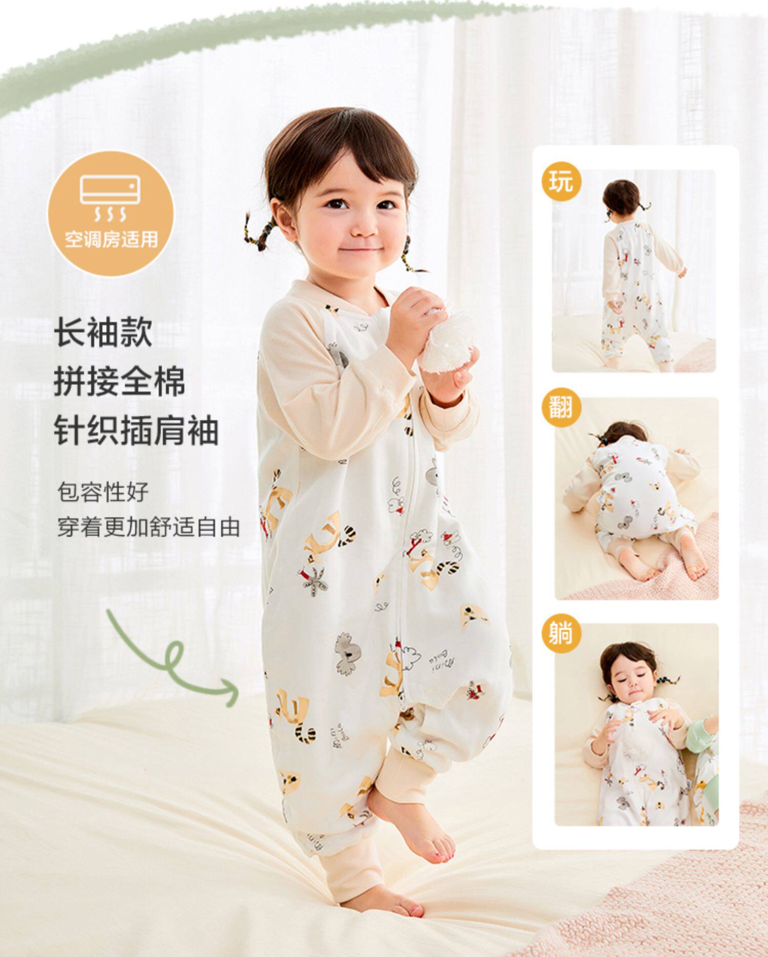 Маленький детский осенний хлопковый тонкий марлевый спальный мешок, детская пижама