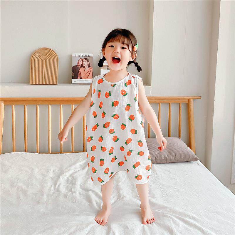 Летний тонкий двухэтажный марлевый спальный мешок, жилет, бандаж пупочный для мальчиков, мультяшный банный халат