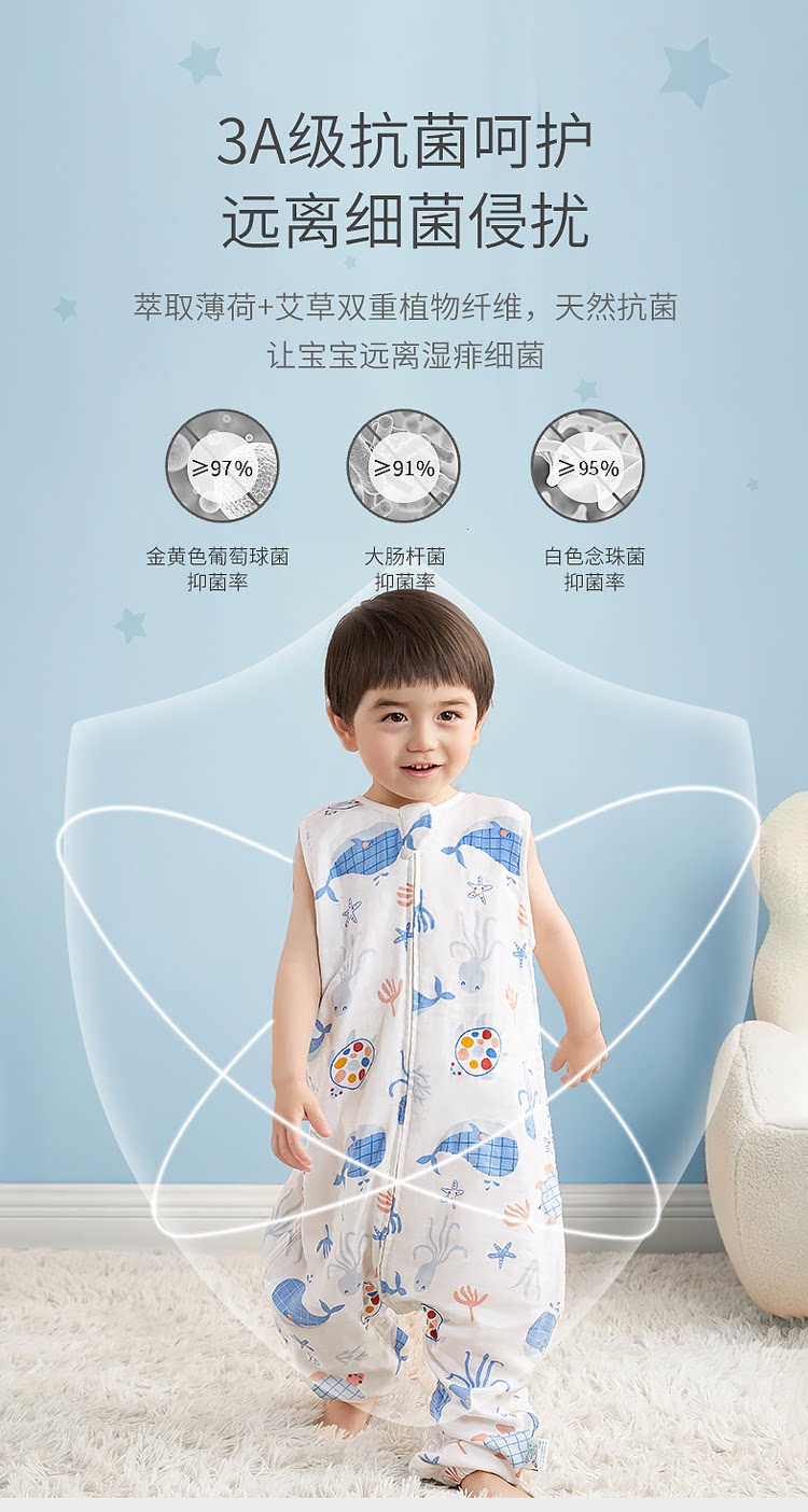 Детский летний тонкий антибактериальный спальный мешок, марлевый жилет