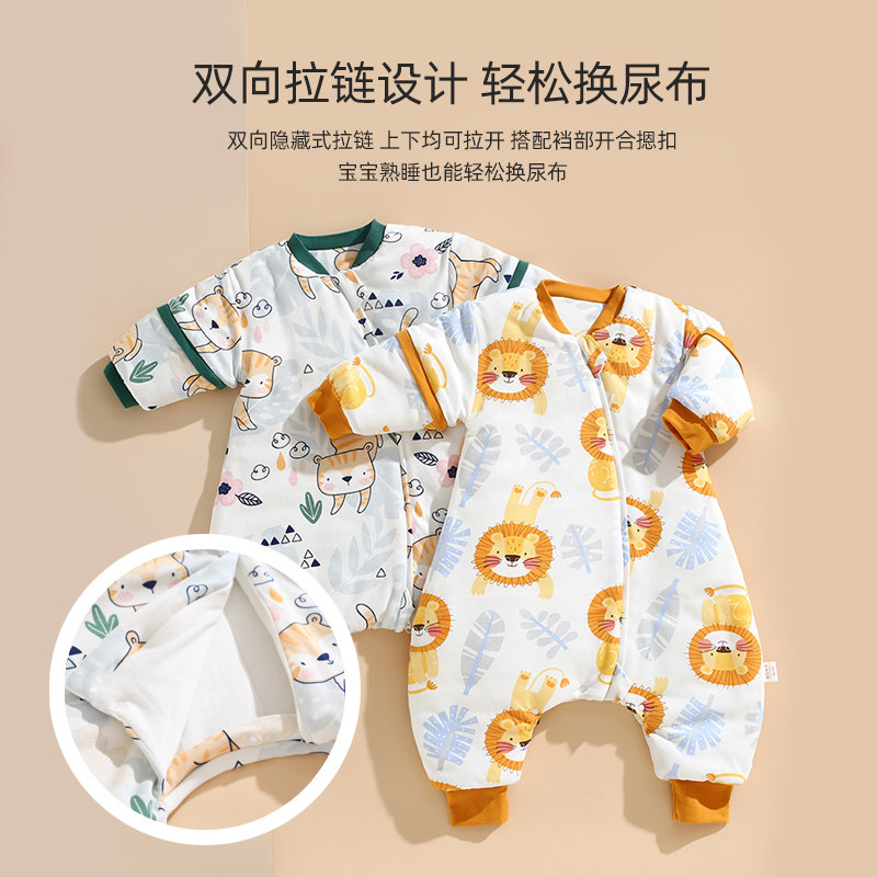 Детский осенний стеганый спальный мешок, лонгслив, детская универсальная пижама для новорожденных, увеличенная толщина