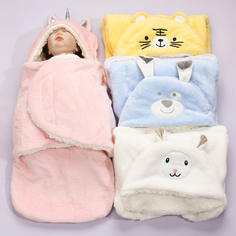 Двухэтажное плюшевое одеяло для новорожденных для младенца, фланелевый ветрозащитный спальный мешок с капюшоном
