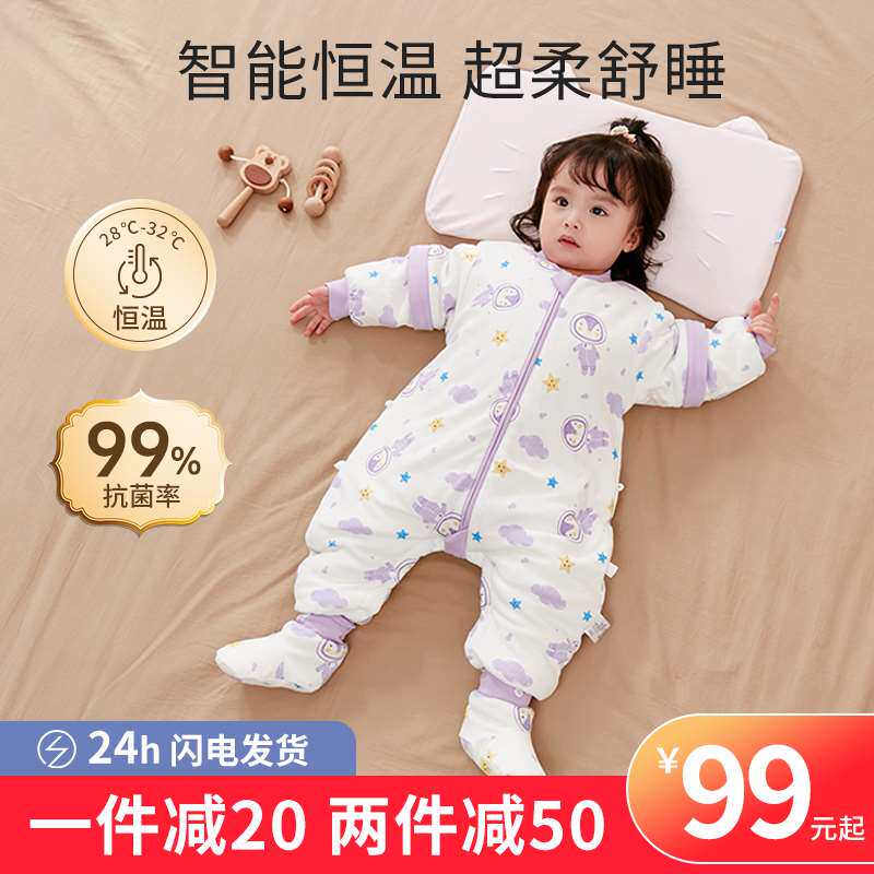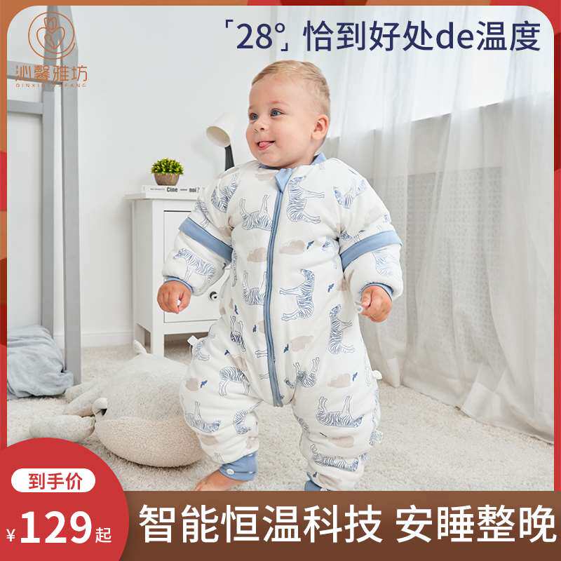 Qinxin Yafang Baby Sleeping Bag Spean, осень и зима чистое хлопок детские начальники делятся на ноги младенцев, а спальные мешки с постоянными температурами используются во всех сезонах