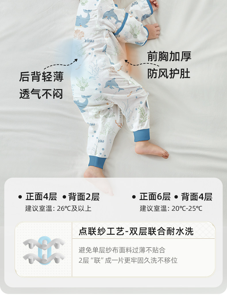 贝肽斯 [Пептид] Детский спальный мешок, летнее тонкое марлевое детское детское одеяло с раздельными ножками, противоударное одеяло, универсальное для всех сезонов
