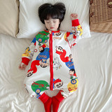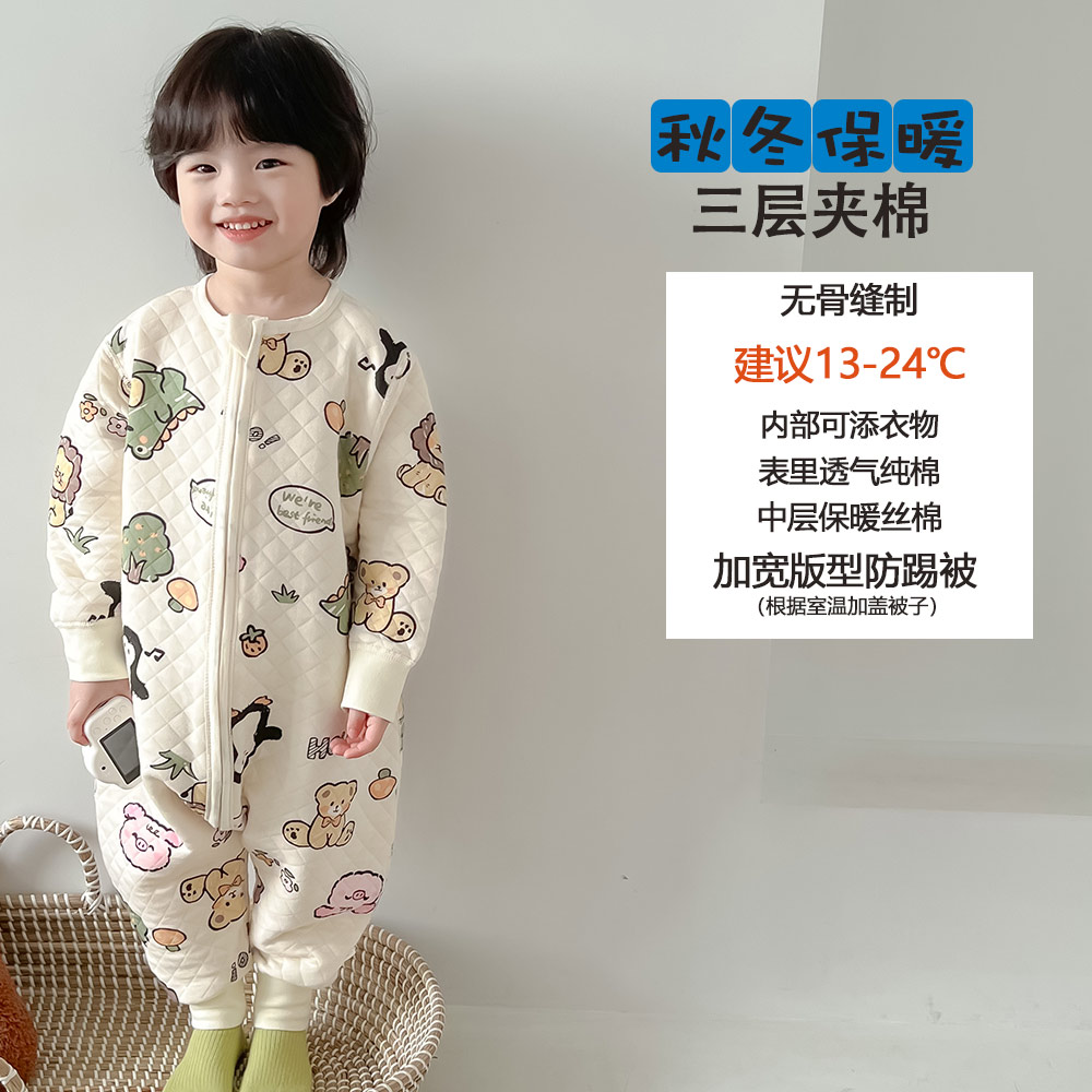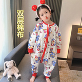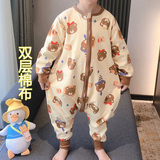 Демисезонный детский двухэтажный хлопковый спальный мешок, осенняя универсальная пижама на четыре сезона, увеличенная толщина