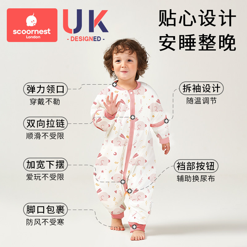 Kobo Baby Sleeping Bag Spend and осень и зима, постоянный бамбуковый хлопок, Four Seasons Universal Children's Anti -Kick, утолщен чистым хлопком