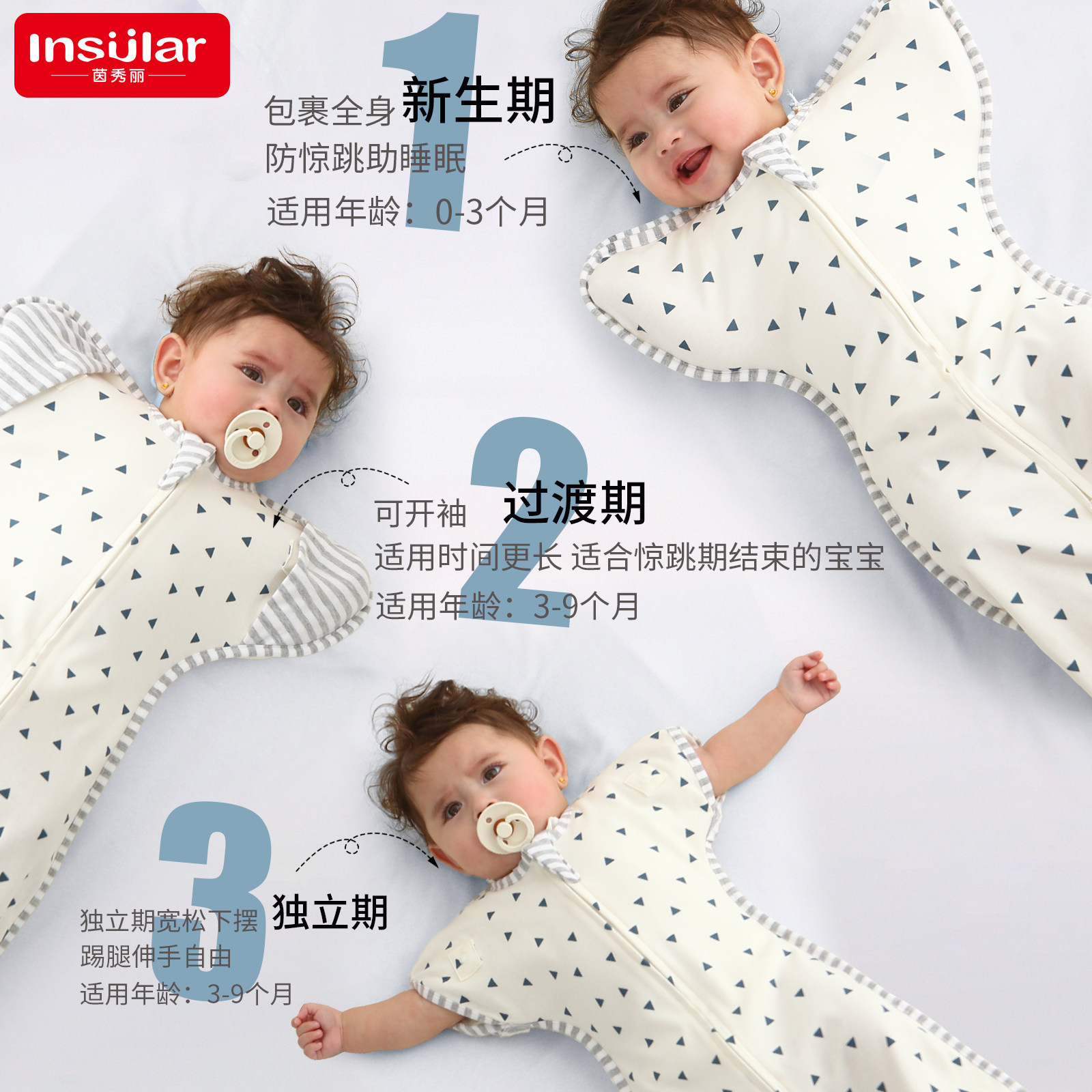 Insular329B спальный мешок для новорожденных, предотвращающий прыжки, из чистого хлопка, детское одеяло с выдвижными рукавами и защитой от ударов, 0-9 месяцев