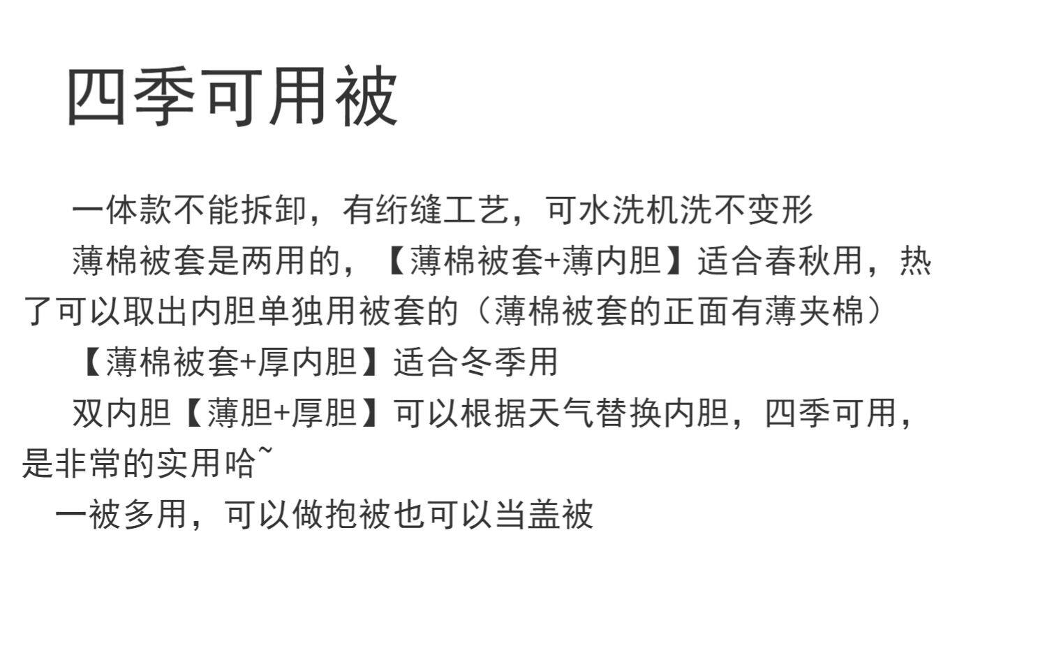 - Тонкий хлопковый пододеяльник, двойная камера из шелковой нити (тонкая камера + толстая камера)