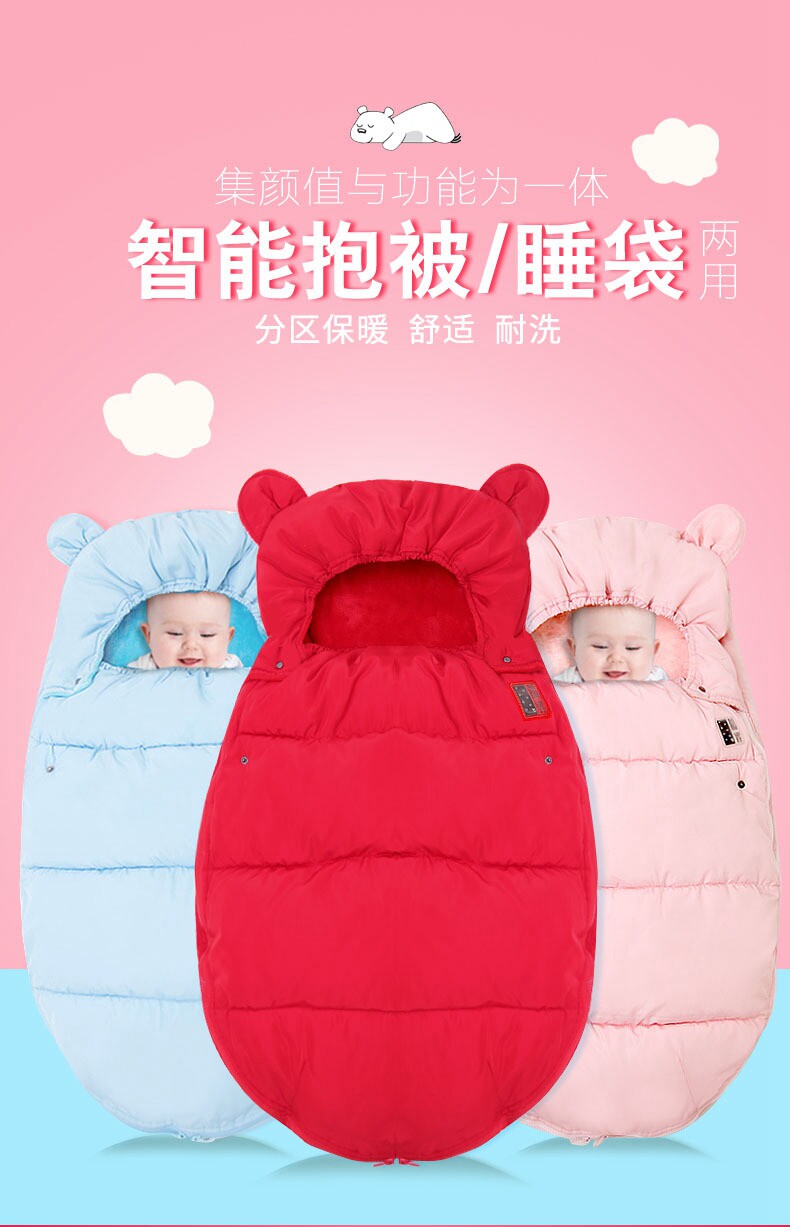 Детское зимнее ветрозащитное одеяло для выхода на улицу, удерживающий тепло детский спальный мешок для новорожденных с пухом, увеличенная толщина