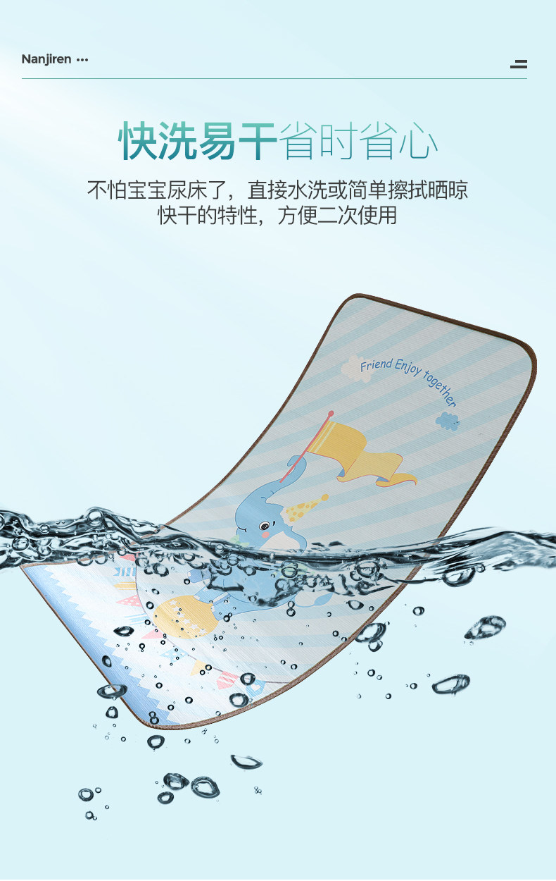 南极人 Шелковый двусторонний коврик, детская дышащая летняя кроватка для новорожденных для детского сада для сна