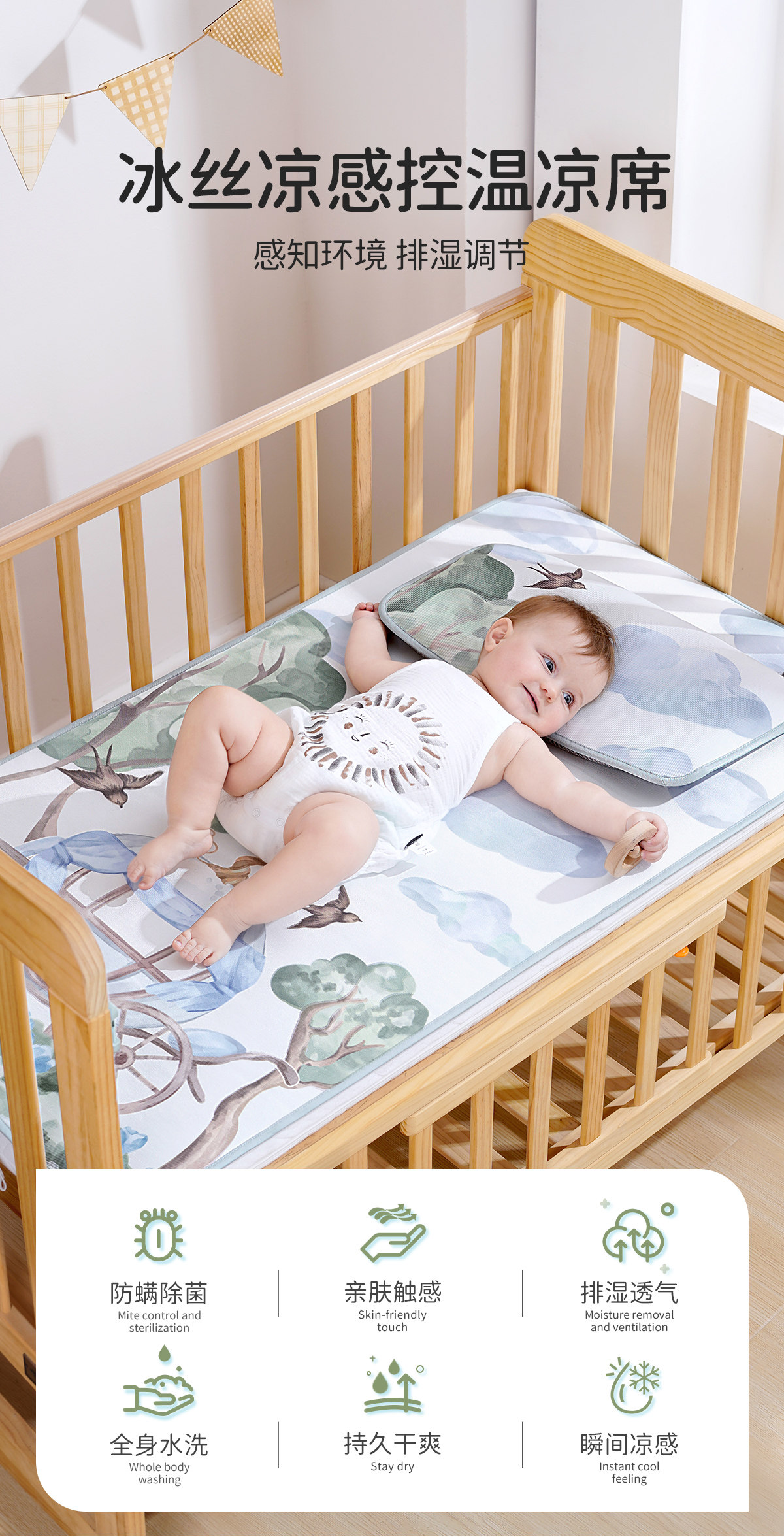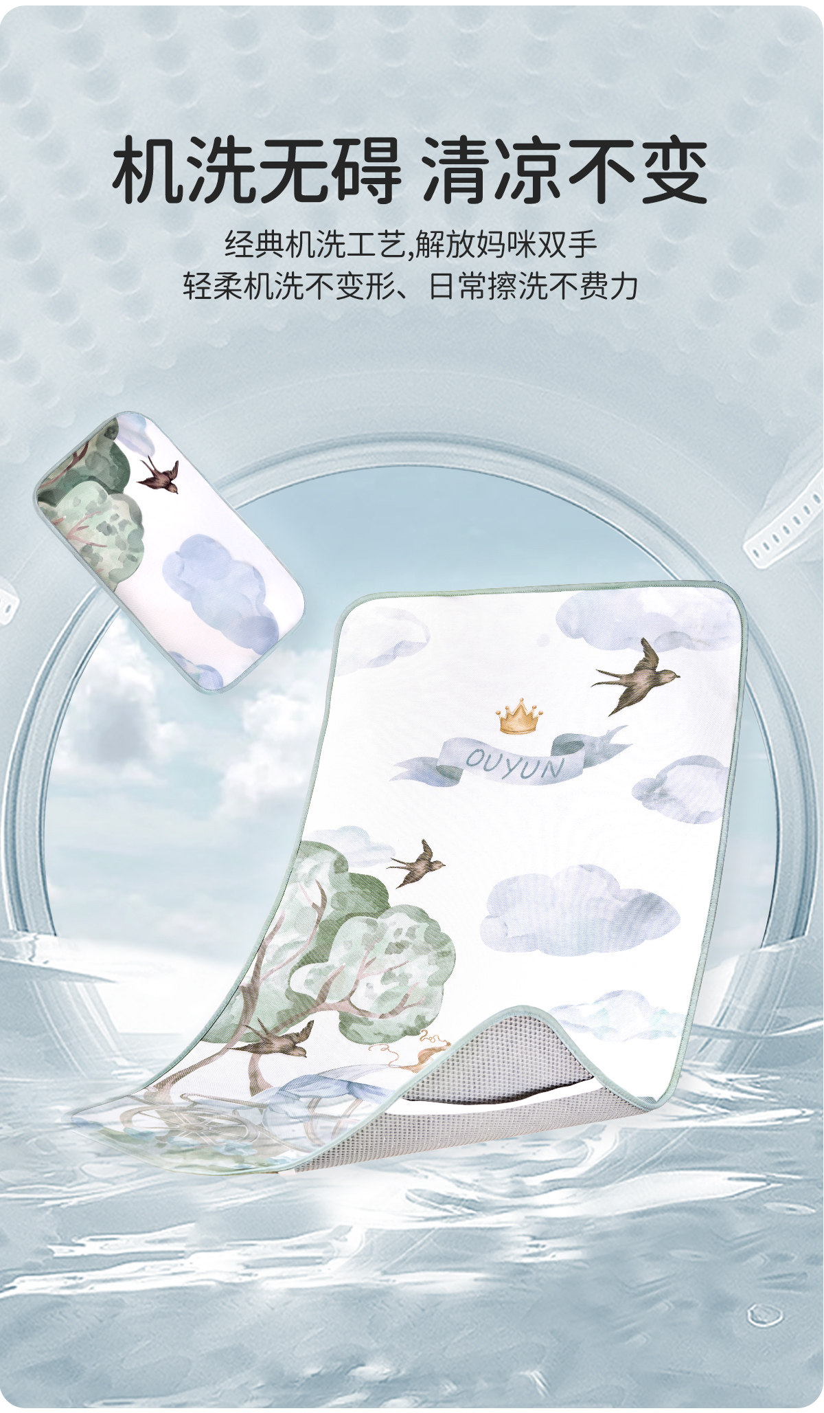 欧孕 Детский шелковый коврик для детского сада для сна, летняя дышащая кроватка, можно стирать