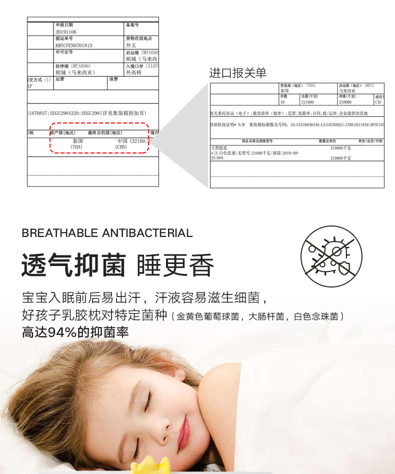 Детская импортная универсальная антибактериальная подушка для детского сада, 2-6 лет, Таиланд