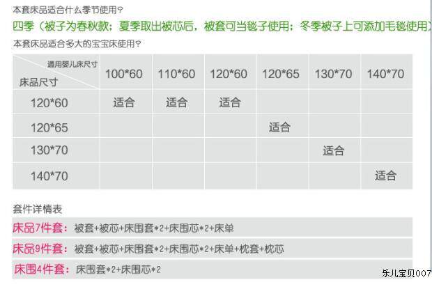 [7件套含被套1个,被芯1个。枕芯1个,枕套1个。床围2个。]