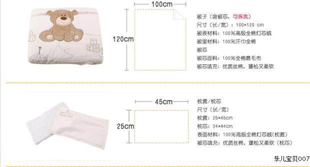 [被子:100*120(表天鹅绒,里针织汗布,100%棉,填充环保无胶丝棉) 被套和被芯可分开。]