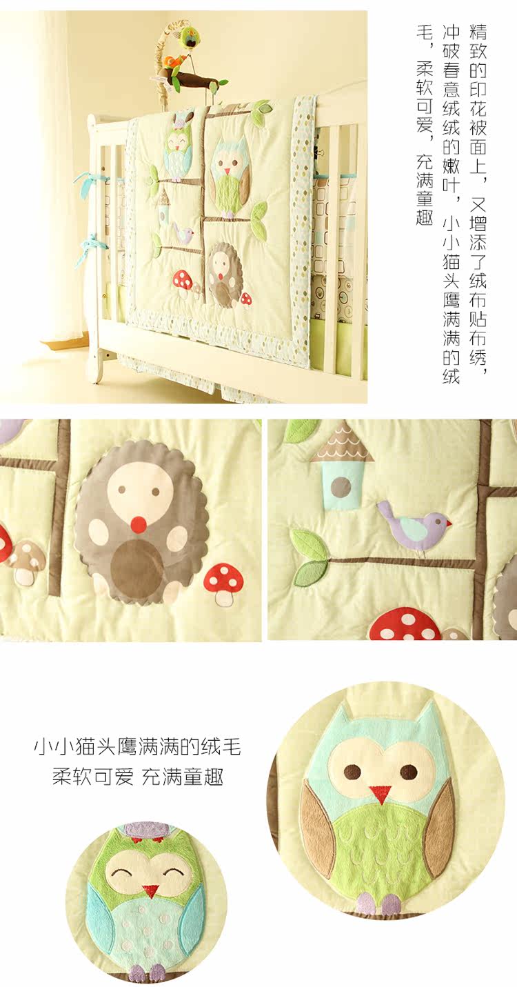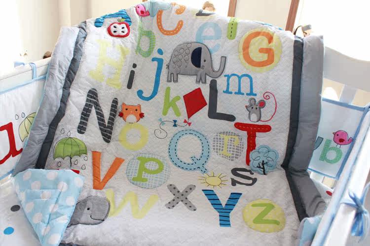 Шесть наборов: стеганое одеяло, окружность кровати, укусы кровати, юбка для кровати, сумка для подгузников, одеяло